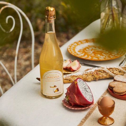 Bulles de Jardins, la nostra gamma di spumanti gourmet senza alcol, biologici e a basso contenuto di zucchero. Pensati per accompagnare i vostri pasti, dall'antipasto al dolce.