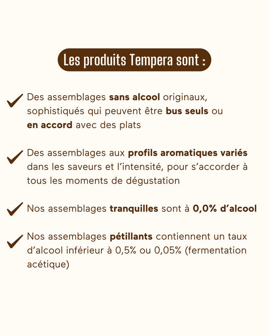Ogni ingrediente è scelto per il suo legame con il terroir, per la sua capacità di raccontare una storia. È questa filosofia che guida la nostra selezione degli ingredienti per Tempera, ogni bottiglia è una celebrazione della terra.